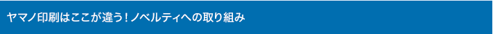 メモ帳やボールペンなどのノベルティ、せっかく配るのであれば社名やロゴを入れて自社の存在を忘れられないようにしたいところ。ヤマノ印刷ではノベルティの手配から印刷・お届けまですべて対応しています。USBやティッシュボックスなど、おもしろみのあるノベルティの手配などもお任せください。
